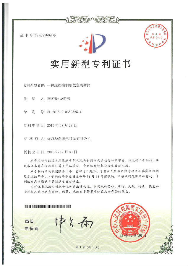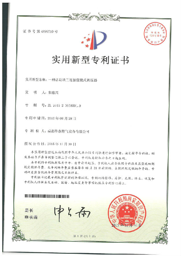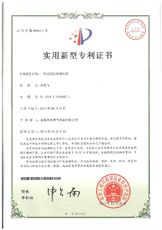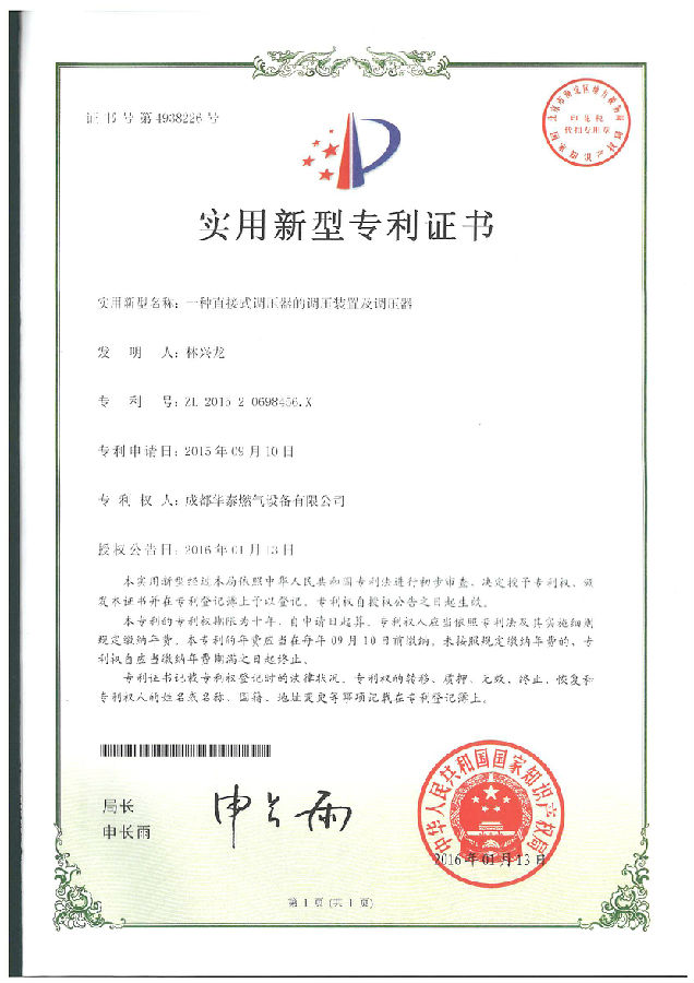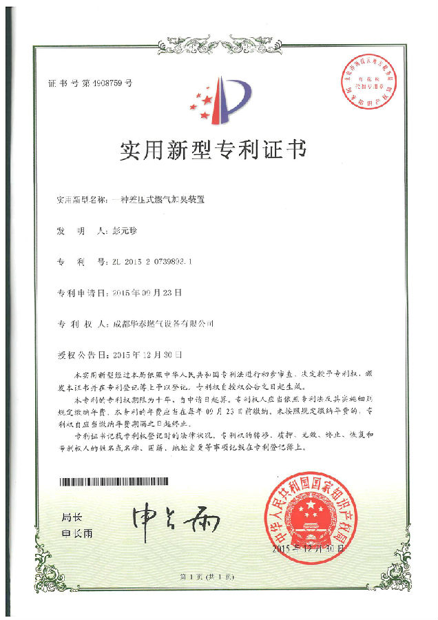 华泰燃气始终注重科技创新与研发能力的提升,将创新作为引领公司发展的一项核心要求贯穿企业发展,通过不断的技术创新赢得市场认可,2016年公司再获得7项发明专利授权并获得国家知识产权局颁发的相关专利证书。标准公司研发创新能力再上一个新台阶。